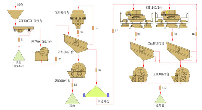 時產:200-300噸碎石生產線